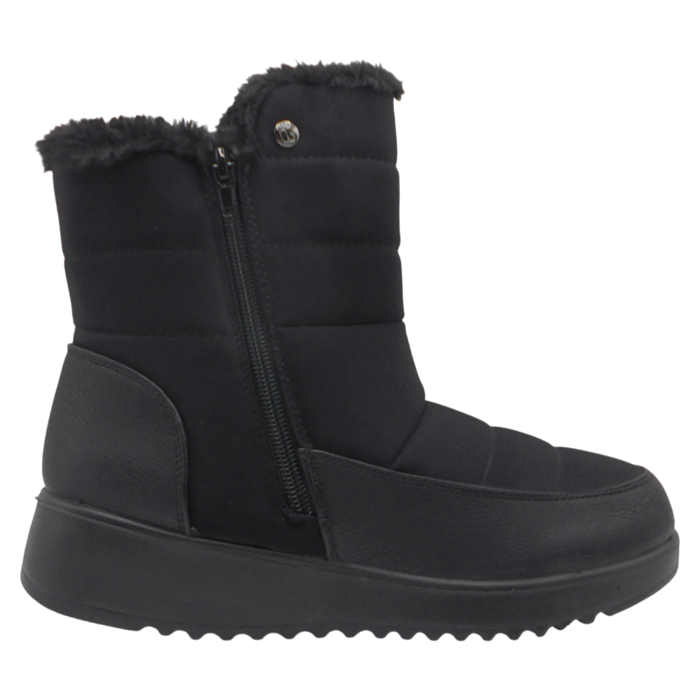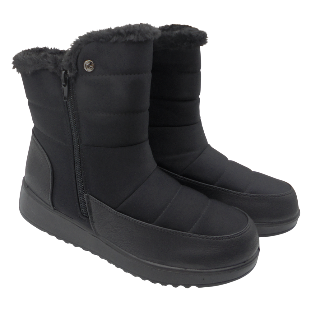 Su forro interior de pelo suave proporciona una agradable sensación de abrigo, mientras que el cierre con cremallera lateral facilita un calce rápido y cómodo.