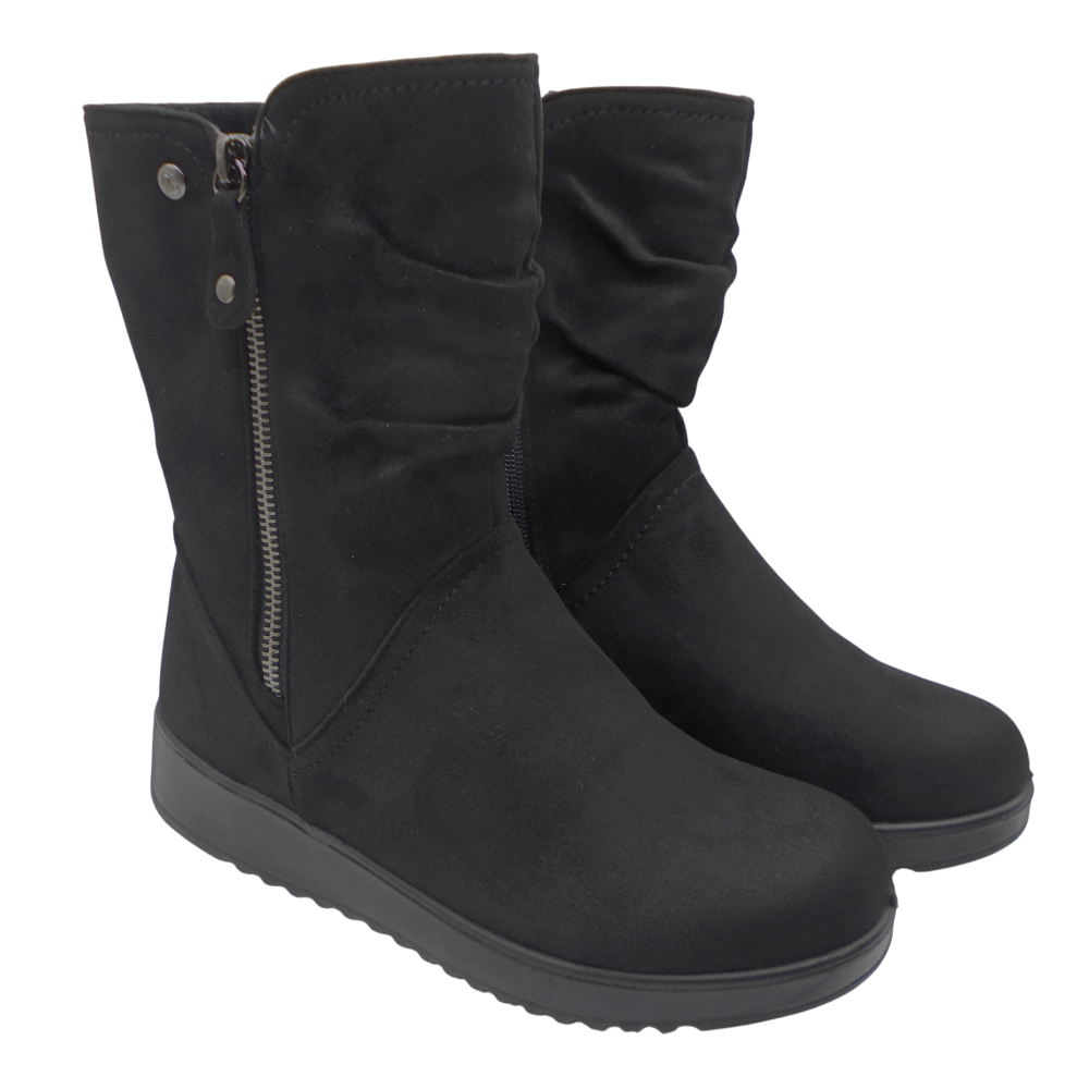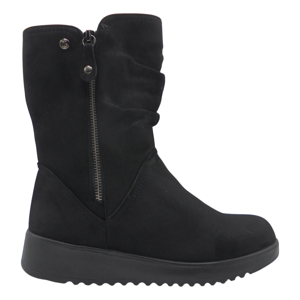 Su cierre con cremallera interior facilita un calce rápido, mientras que la cremallera lateral decorativa aporta un toque elegante y actual.