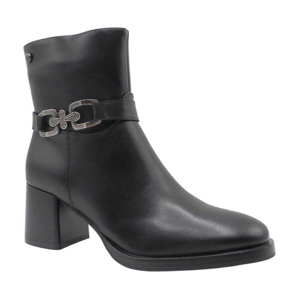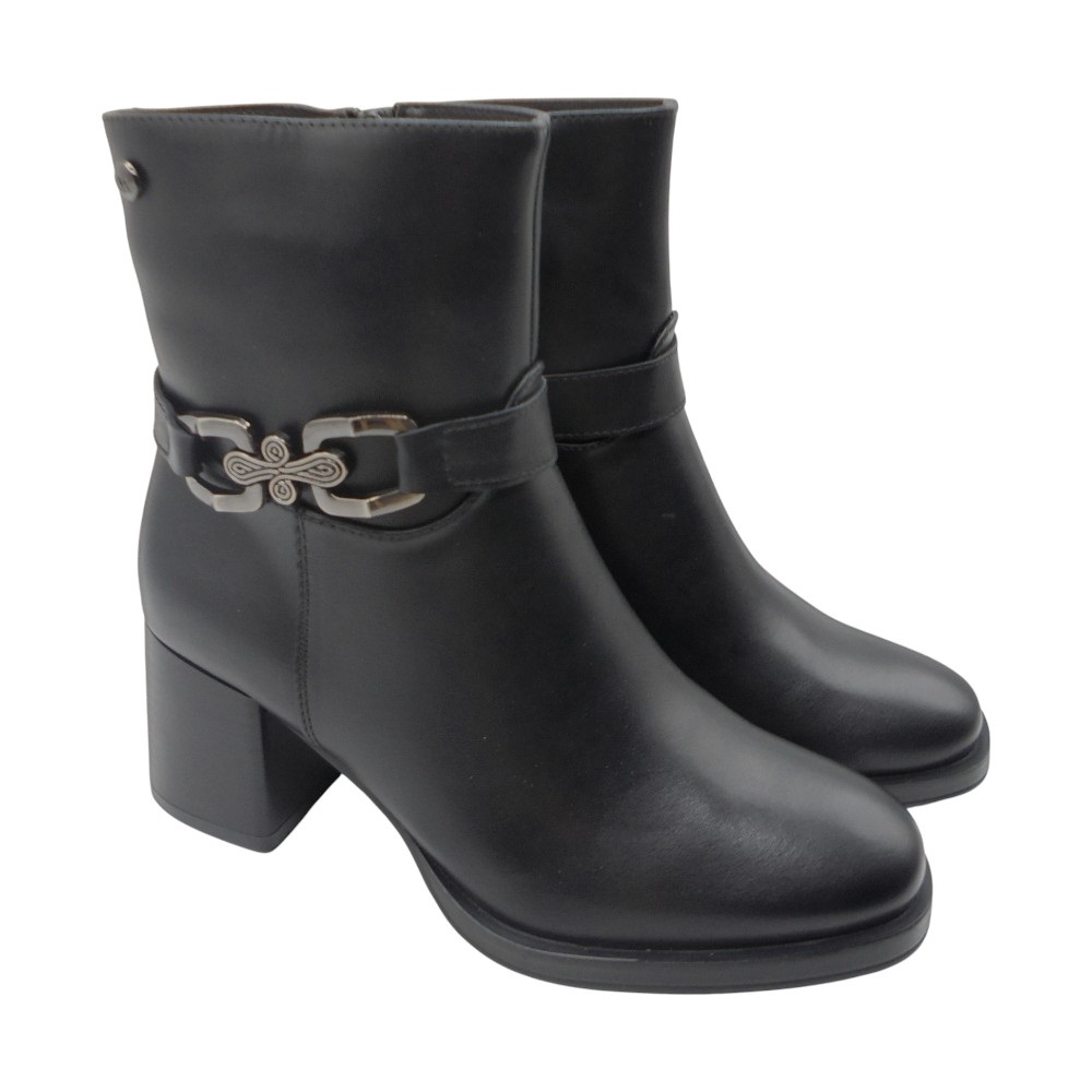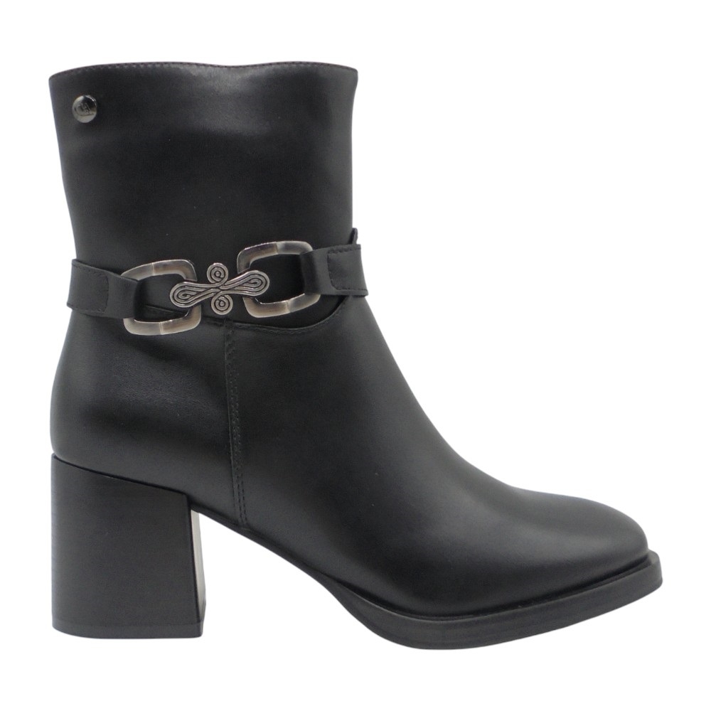 Un diseño moderno y femenino que se convierte en el complemento ideal para elevar cualquier look. Este botín está confeccionado en piel sintética de excelente calidad, con acabado elegante y un adorno de cadena lateral que aporta un toque actual y sofisticado.