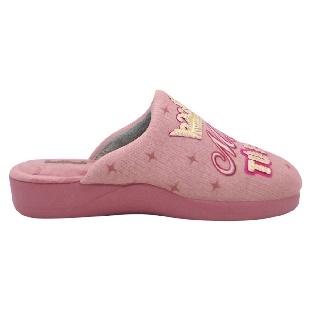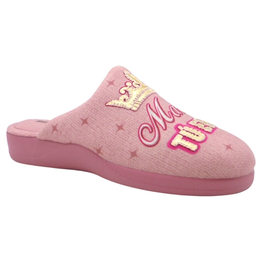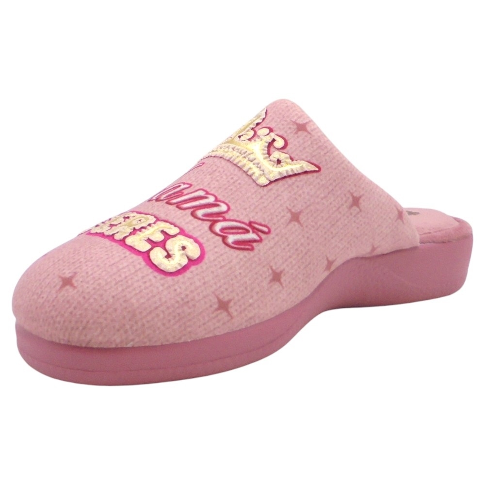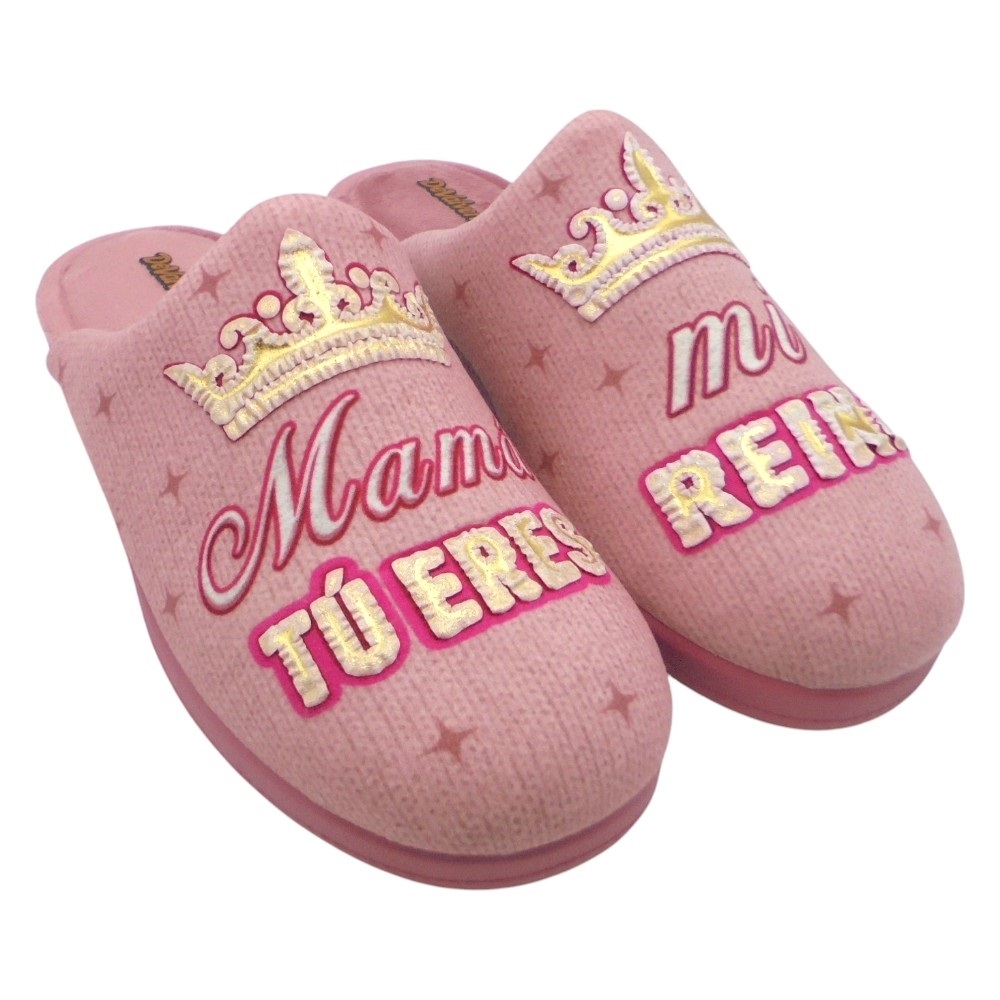 Descubre el equilibrio perfecto entre comodidad y ternura con las zapatillas DeValverde modelo 1178. Con un diseño lleno de amor, este modelo luce el mensaje “Mamá, tú eres mi reina”, convirtiéndolas en un regalo ideal para consentir a mamá o para recordarle cada día lo especial que es. El interior acolchado abraza los pies con suavidad, mientras que la suela antideslizante asegura pasos firmes y seguros dentro del hogar. Gracias a su práctico diseño tipo zueco, estas zapatillas cuña son fáciles de calzar y descalzar, ofreciendo la máxima comodidad en el día a día.