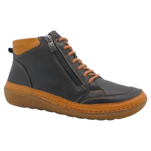 El equilibrio perfecto entre comodidad y estilo. Fabricado en piel natural de primera calidad, este botín presenta un diseño versátil con cierre combinado de cordones y cremallera que facilita el ajuste y la puesta. Su piso cosido con pespuntes decorativos y el contraste de piel en diferente tono aportan un toque único y moderno.