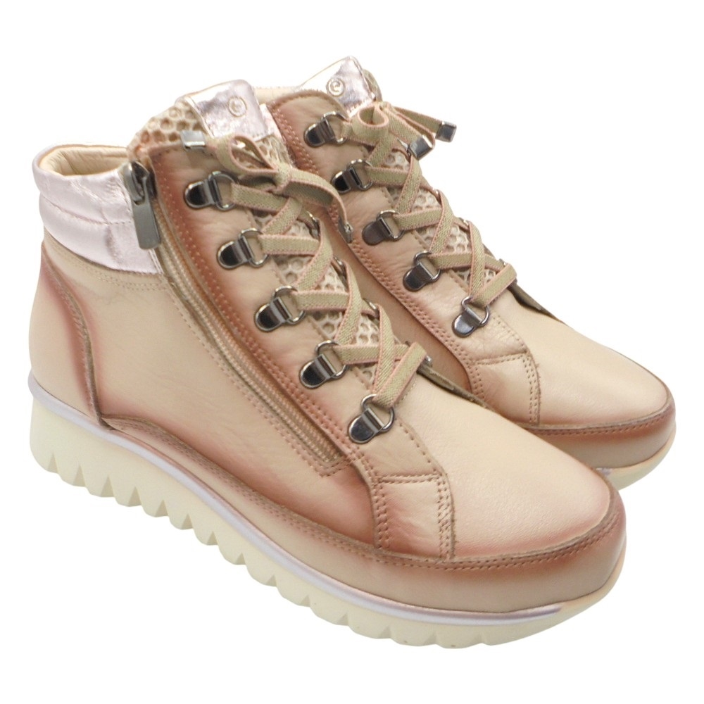 Dispone de cierre de cordones con ganchos y cremallera lateral, lo que facilita el ajuste y ofrece comodidad al ponerlo y quitarlo. Su cuello acolchado al tobillo aporta sujeción y un extra de confort en la pisada.