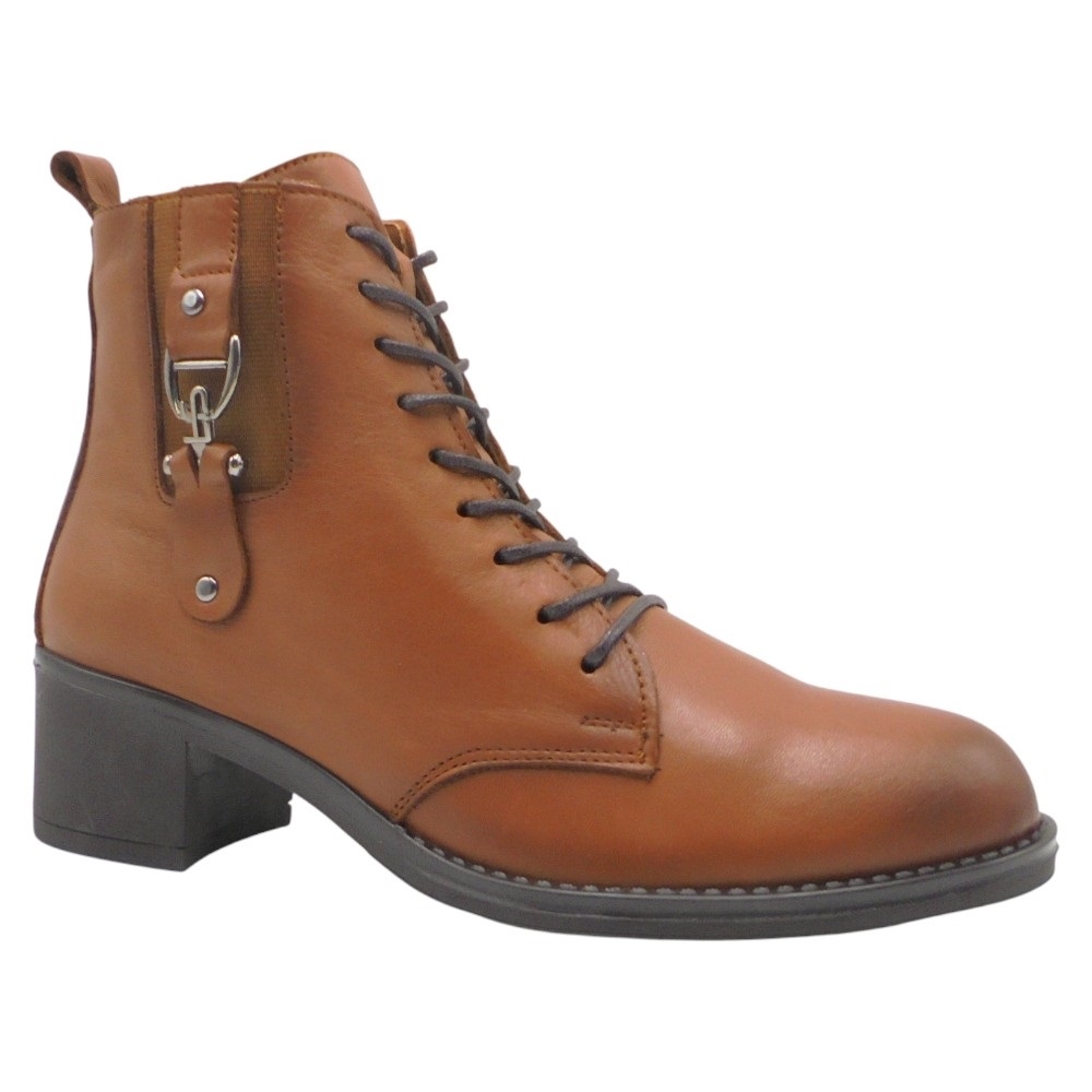 Un diseño elegante y versátil que se adapta a cualquier ocasión. Este botín está confeccionado en piel natural de alta calidad, con cierre de cremallera lateral que aporta comodidad al calzarlo y cordones decorativos adornados con una hebilla metalizada para un toque sofisticado y actual.