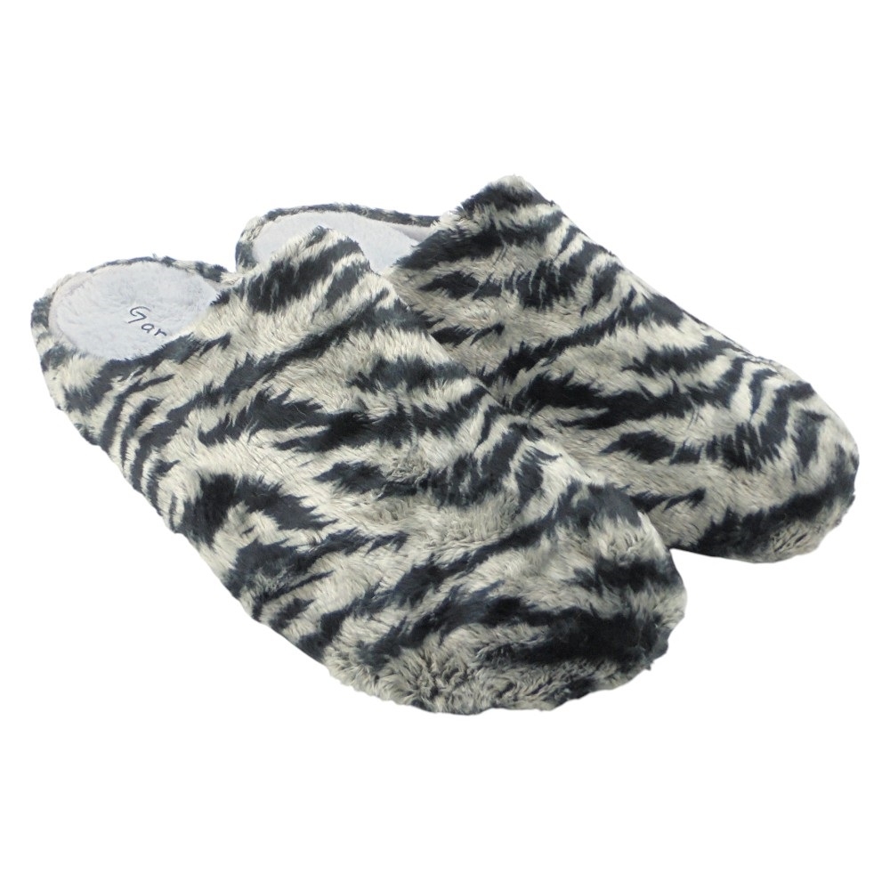 Disfruta de la suavidad y el confort del modelo 15300 de Garzón, una zapatilla de casa destalonada y plana pensada para ofrecer calidez y bienestar en cada paso. Su tejido exterior de pelo con estampado tipo cebra aporta un estilo moderno y original, sin renunciar a la comodidad característica de la marca.