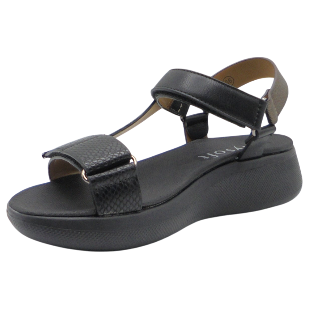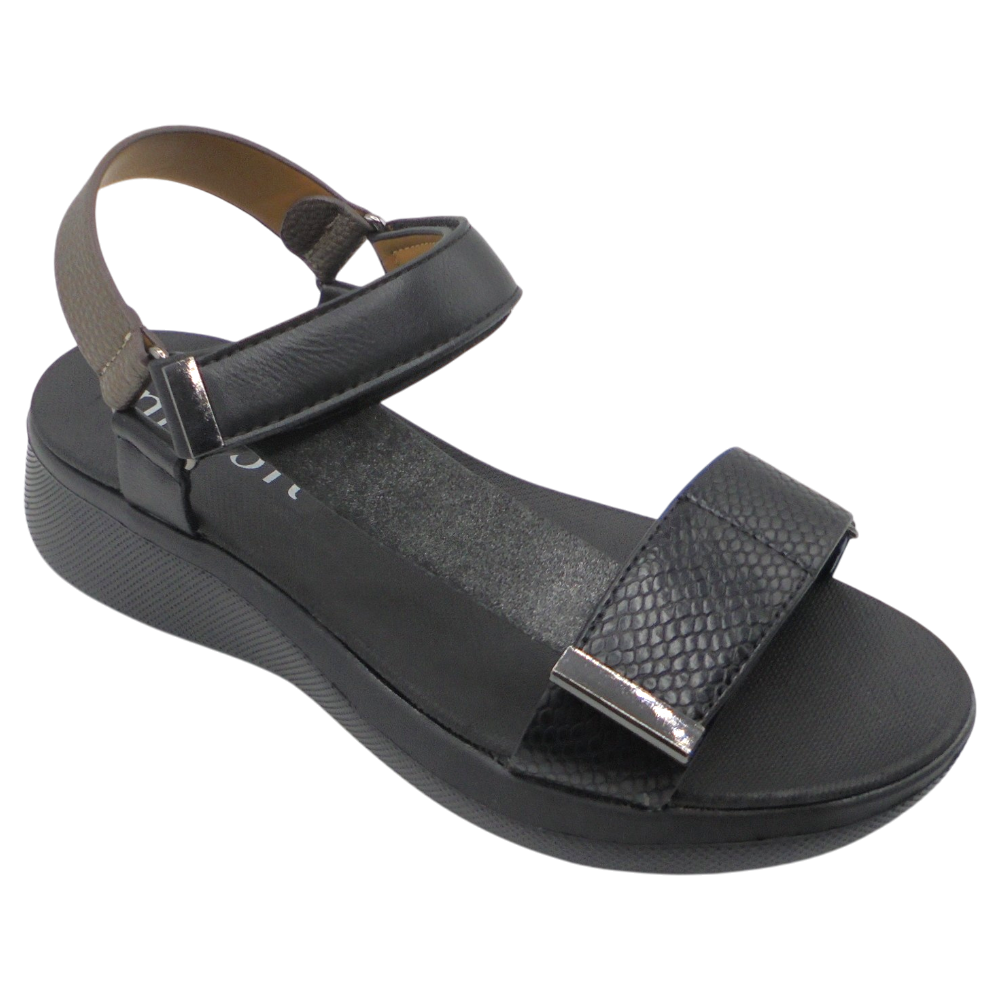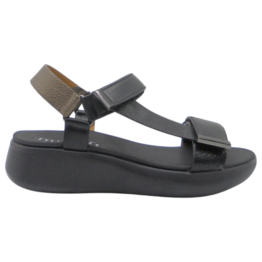 Sandalia de cuña de la marca Mysoft, modelo 26M364, diseñada para ofrecer comodidad y estilo en el día a día. Presenta una cuña de 4 cm que proporciona una ligera elevación sin renunciar al confort. Su diseño está compuesto por tiras en dos tonos, aportando un toque moderno y versátil.