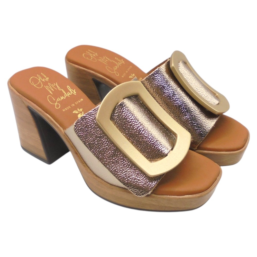 La sandalia Oh My Sandals 5394 es el equilibrio perfecto entre estilo y comodidad. Este elegante modelo tipo zueco, confeccionado en piel de color cava, se convierte en el complemento ideal para cualquier mujer que busque sofisticación y versatilidad en su día a día. Su diseño destaca por una hebilla grande en la pala, aportando un toque moderno y llamativo, mientras que el pasador dorado decorativo añade un aire de distinción.
