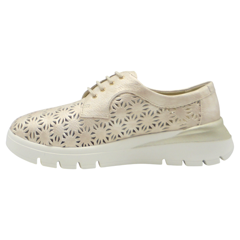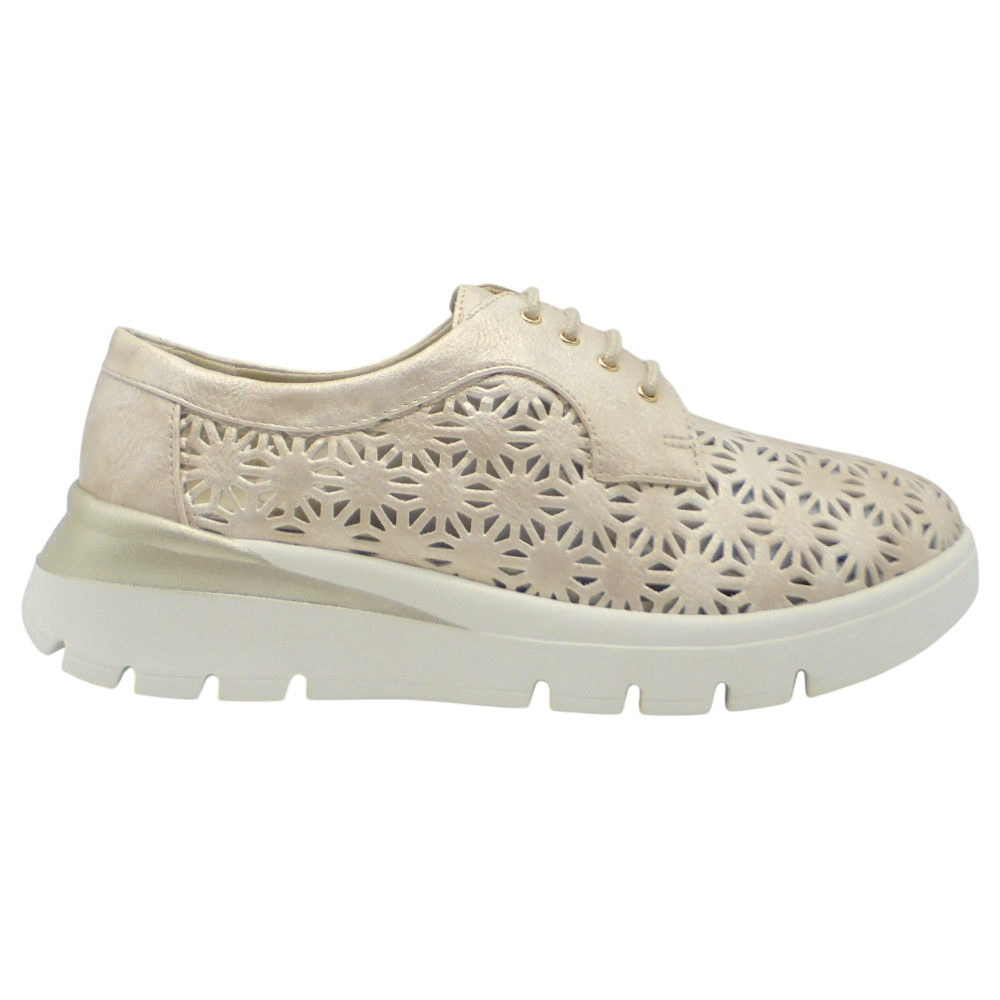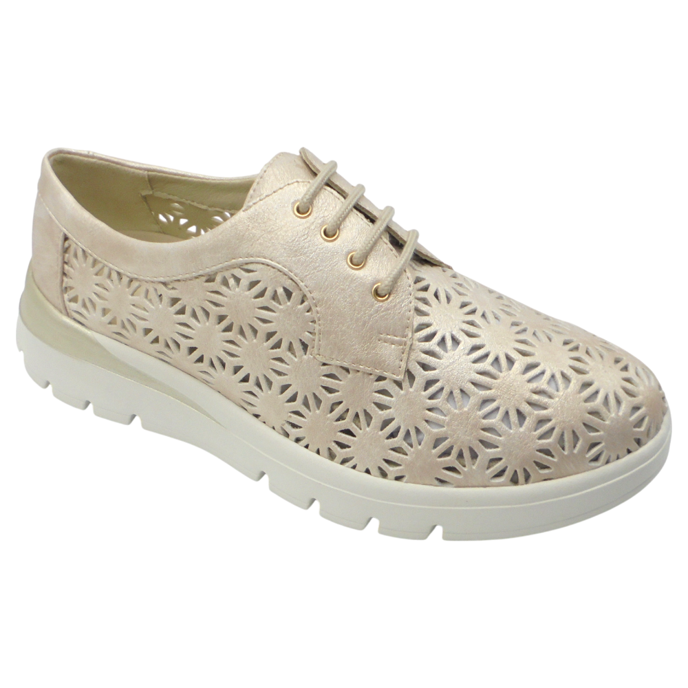Está fabricado en piel sintética picada combinada con piel lisa, favoreciendo la transpirabilidad y aportando un acabado elegante y actual. Incorpora una plantilla extraíble termoconfortada de gel que ofrece una pisada suave y acolchada, ideal para largas jornadas.