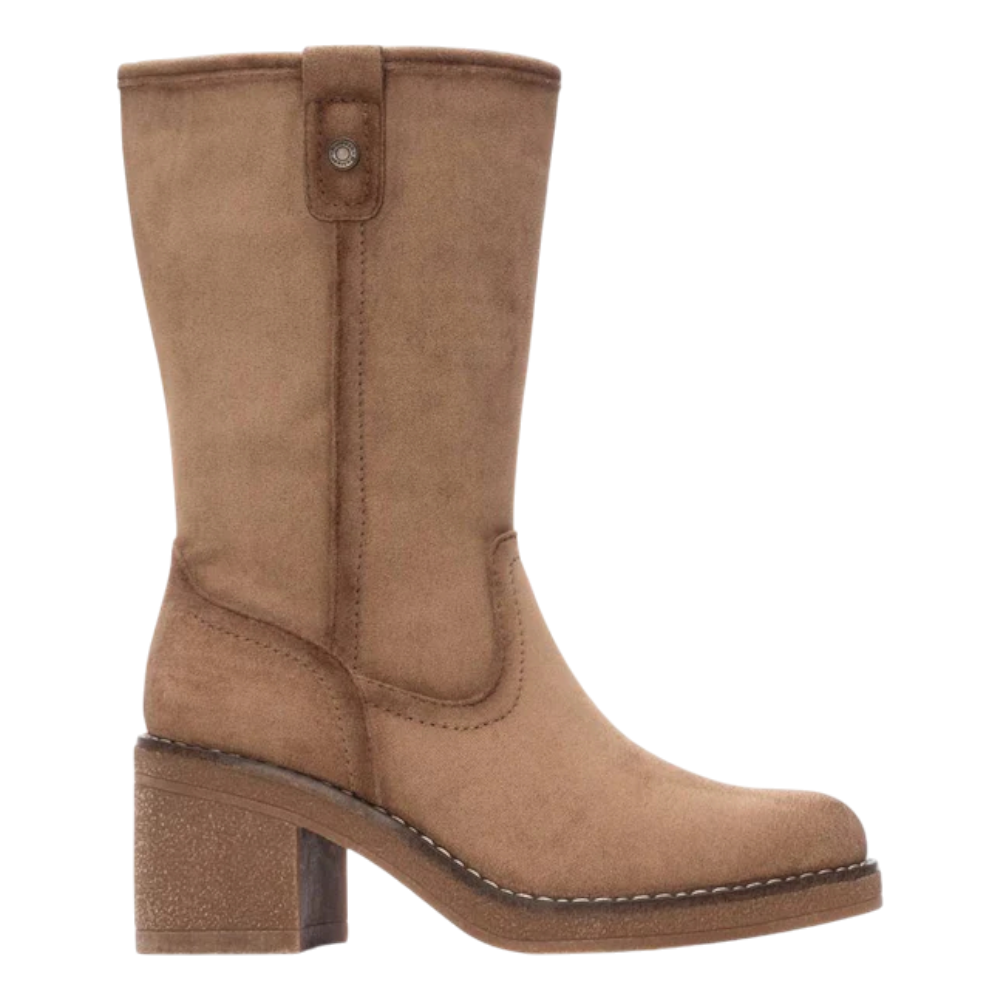 Luce estilo y comodidad esta temporada con la bota de caña alta Refresh modelo 173040. Confeccionada en suave antelina, ofrece un tacto agradable y un acabado elegante que se adapta fácilmente a cualquier look.