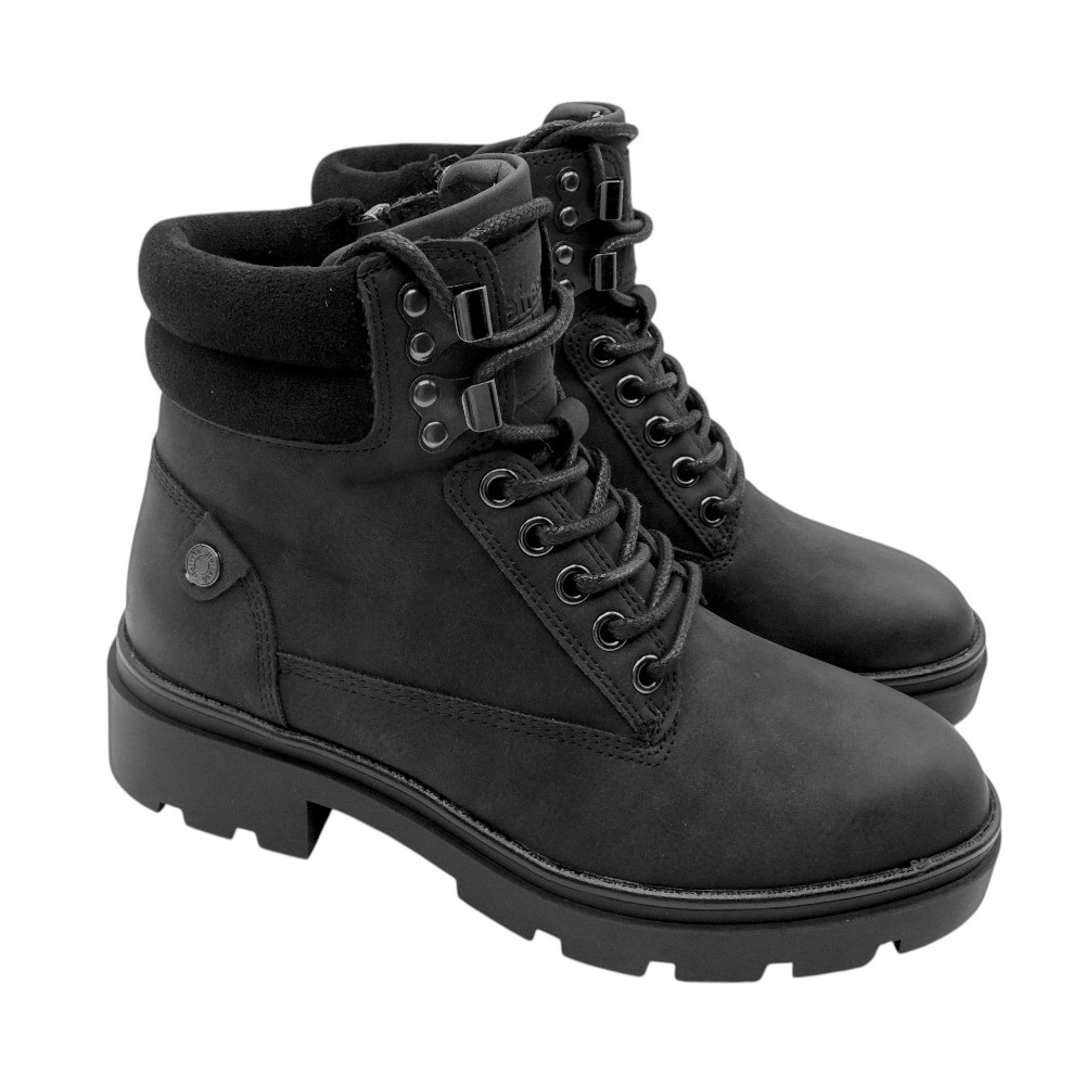 La suela de goma con volumen y acabado antideslizante asegura estabilidad y firmeza en cada paso, convirtiendo a este botín en la elección ideal para looks urbanos y casuales con un aire aventurero.