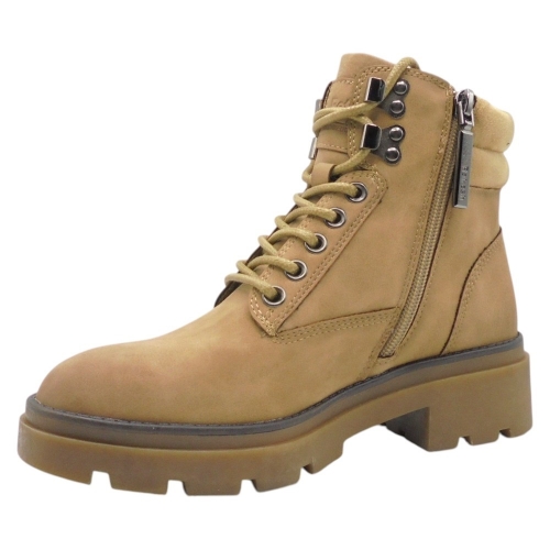 La suela de goma con volumen y acabado antideslizante asegura estabilidad y firmeza en cada paso, convirtiendo a este botín en la elección ideal para looks urbanos y casuales con un aire aventurero.
