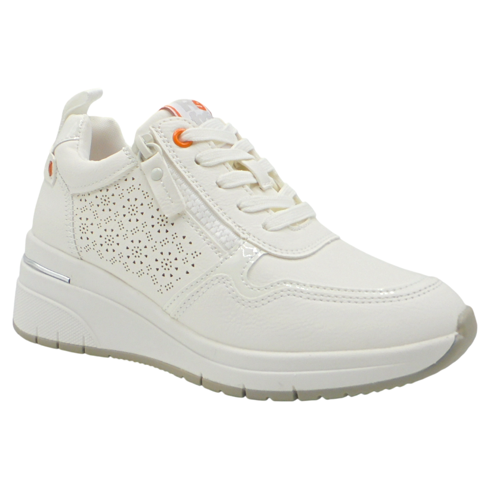 Estas sneakers con cuña incorporan un tacón de 5 cm, que estiliza la figura sin renunciar al confort. Disponen de cordones de goma ajustables y una cremallera lateral que facilita un calce rápido, cómodo y seguro. Están disponibles en varias tallas y cuentan con ancho normal, adaptándose fácilmente a diferentes tipos de pie.
