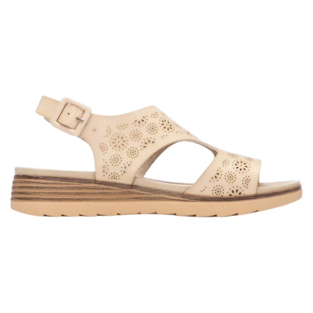 Descubre la sandalia perfecta para acompañarte en tu día a día. El modelo 175167 de Refresh combina comodidad y estilo en un diseño actual y versátil. Fabricada en material que imita la piel, destaca por su elegante troquelado decorativo que aporta un toque distintivo.