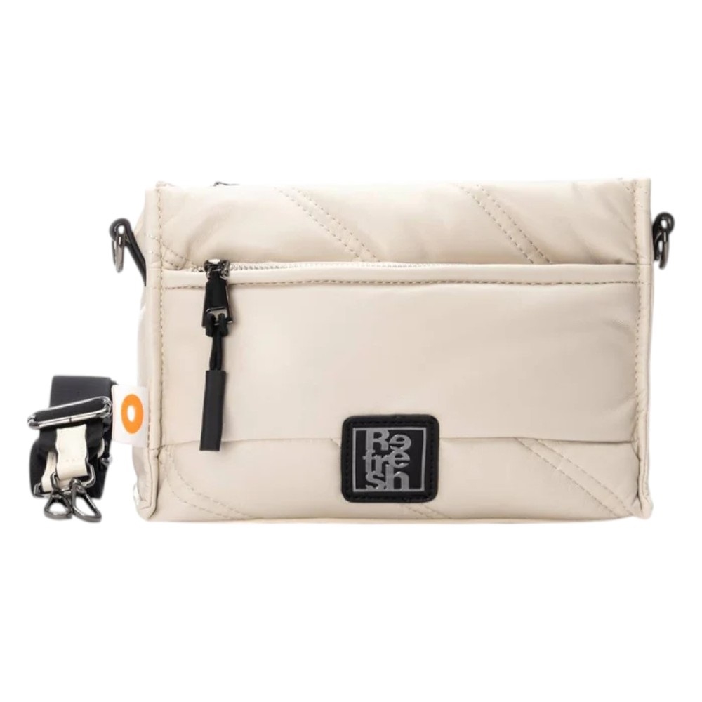 El bolso bandolera Refresh 183321 combina estilo y funcionalidad en un diseño actual. Confeccionado en material que imita la piel con acabado metalizado, aporta un toque moderno y llamativo sin renunciar a la comodidad.