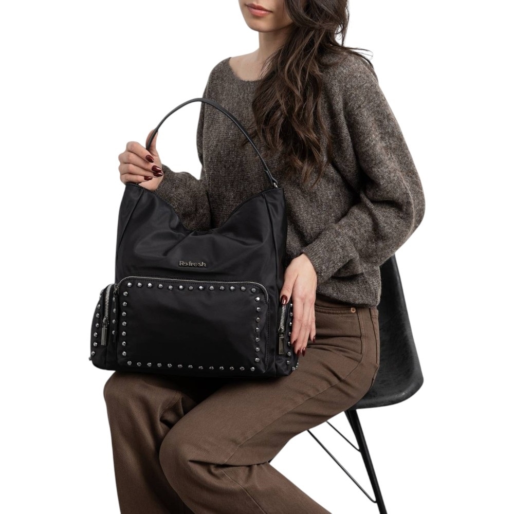 El bolso de mujer Refresh modelo 183329 es la elección perfecta para quienes buscan un estilo urbano y con personalidad. Fabricado en material que imita la piel, destaca por su diseño moderno decorado con tachas metálicas, que aportan un toque atrevido y actual.