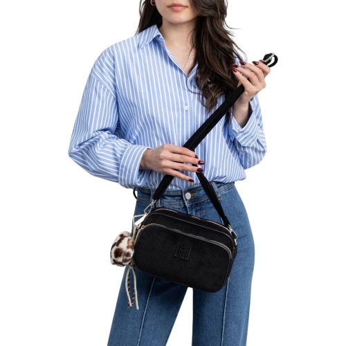 Añade un toque retro y actual a tus outfits con el bolso bandolera Refresh 183339. Fabricado en textil tipo pana, se distingue por su textura suave y un diseño lleno de personalidad que lo convierte en el complemento perfecto para realzar tus looks diarios.