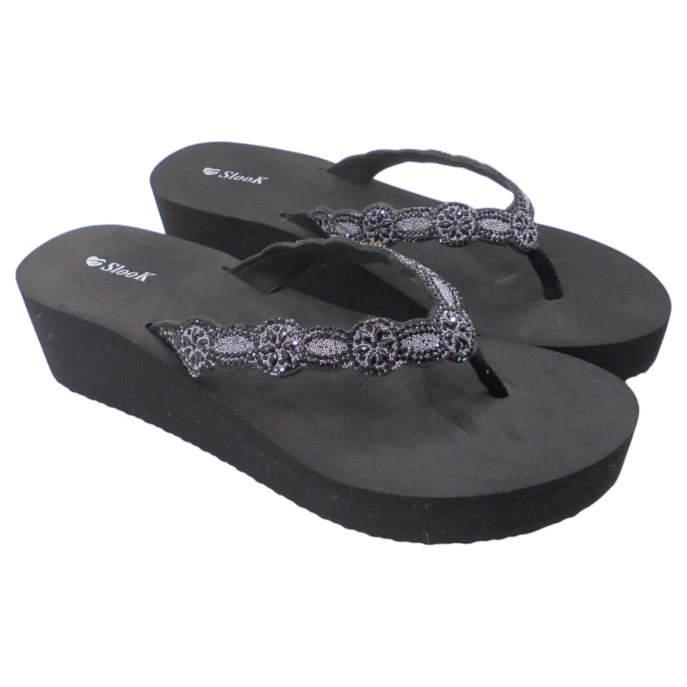Eleva tu estilo con estas elegantes y cómodas sandalias de la marca SLOOK. El modelo 12130983-12 Degro presenta un diseño con agarre delantero al dedo y tiras en forma de "L" decoradas con pedrería en tonos negro y plata, que añaden un toque brillante y sofisticado al calzado.