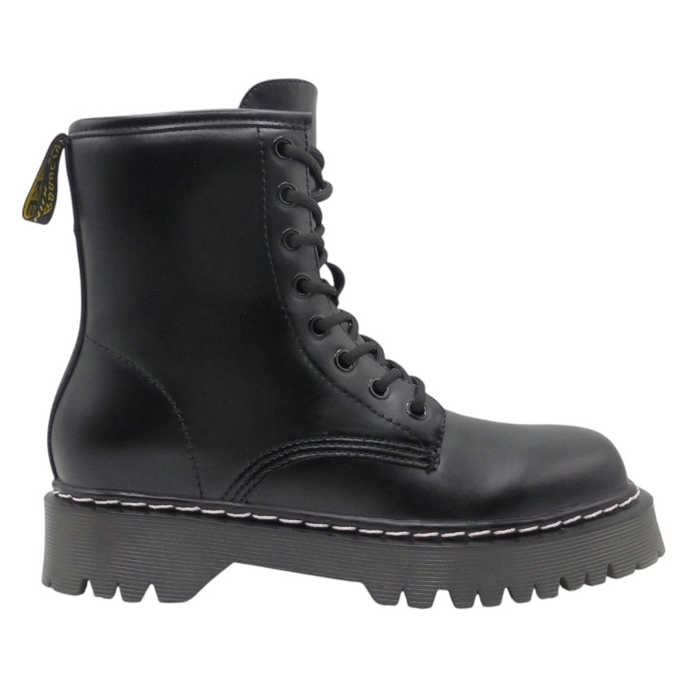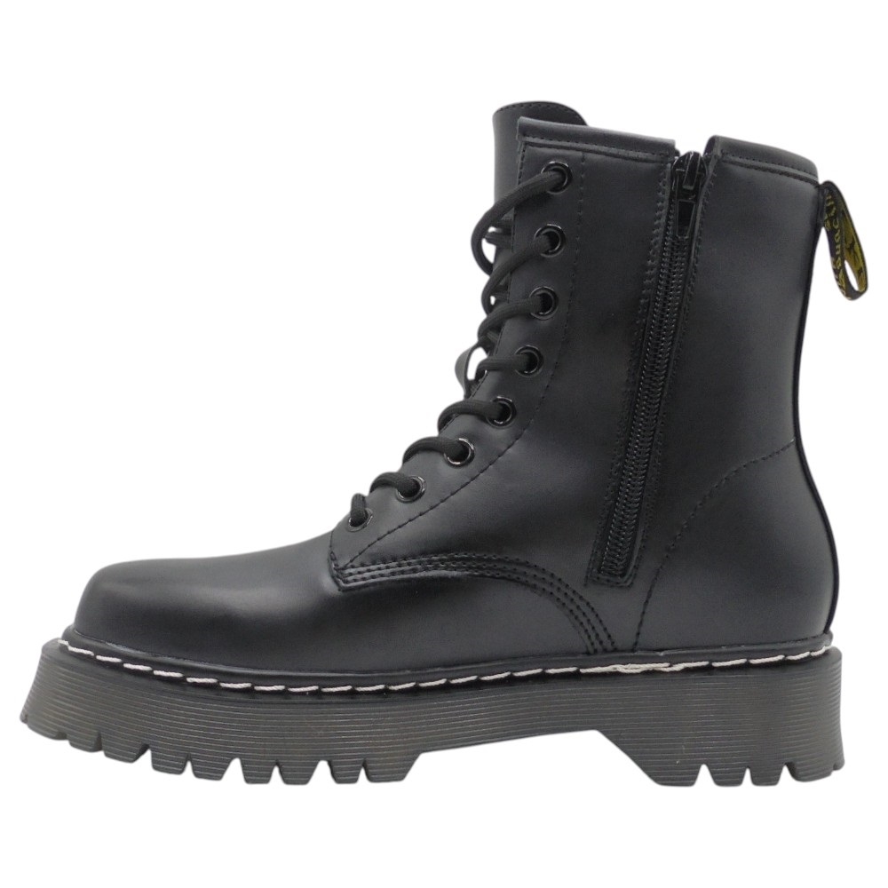Su diseño destaca por los pespuntes blancos en la suela, un detalle audaz que rompe con lo convencional y aporta un sello de identidad único. Además, incorpora cordones frontales y una cremallera lateral, lo que facilita un ajuste cómodo y seguro sin sacrificar estilo.