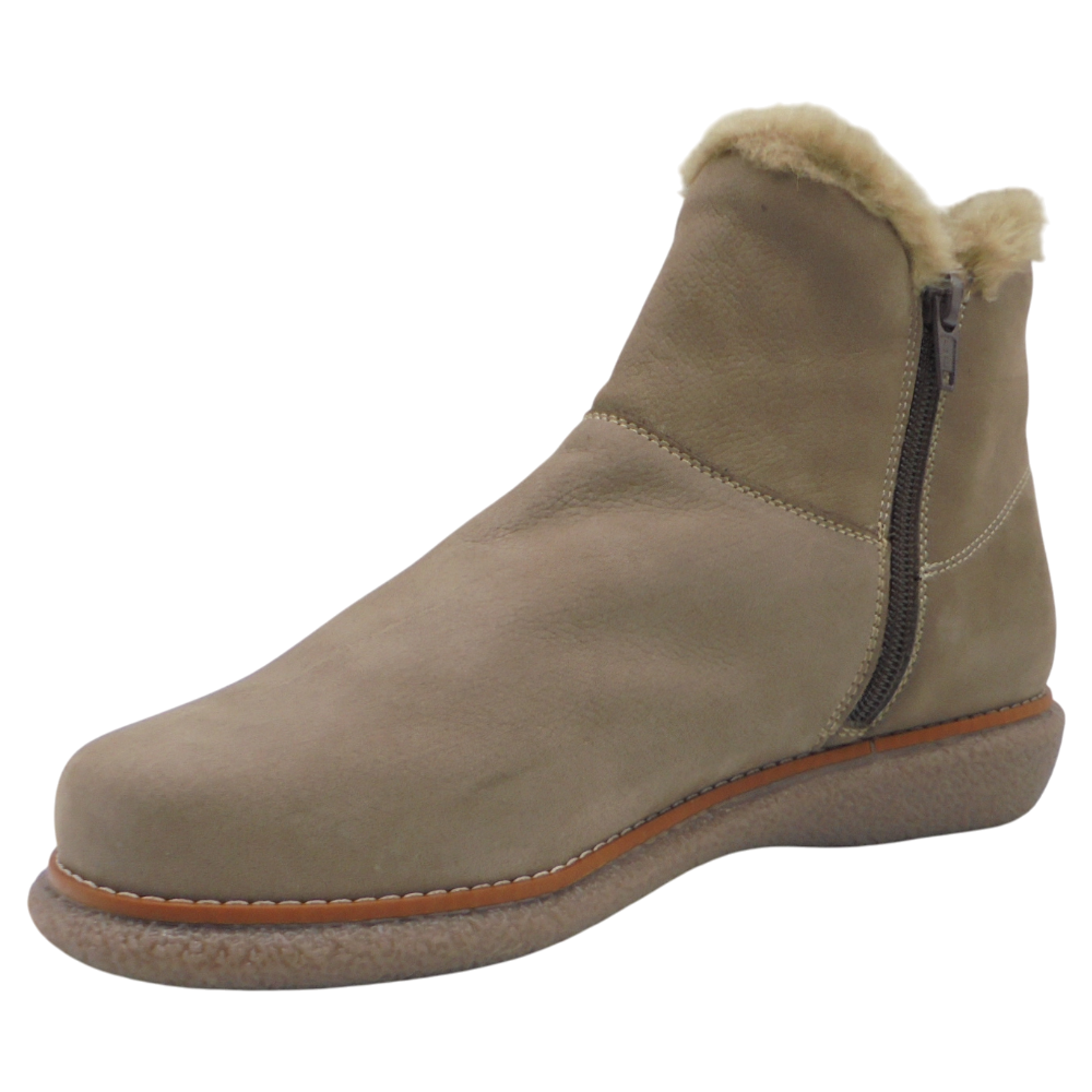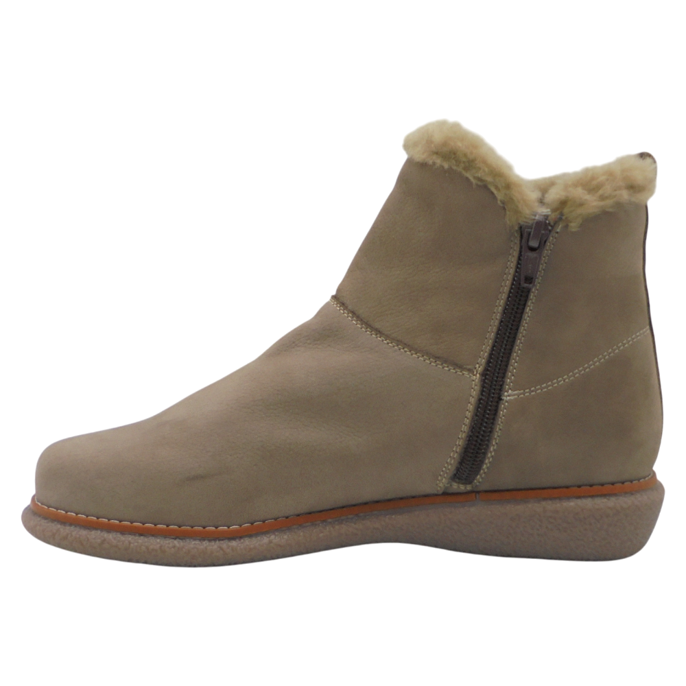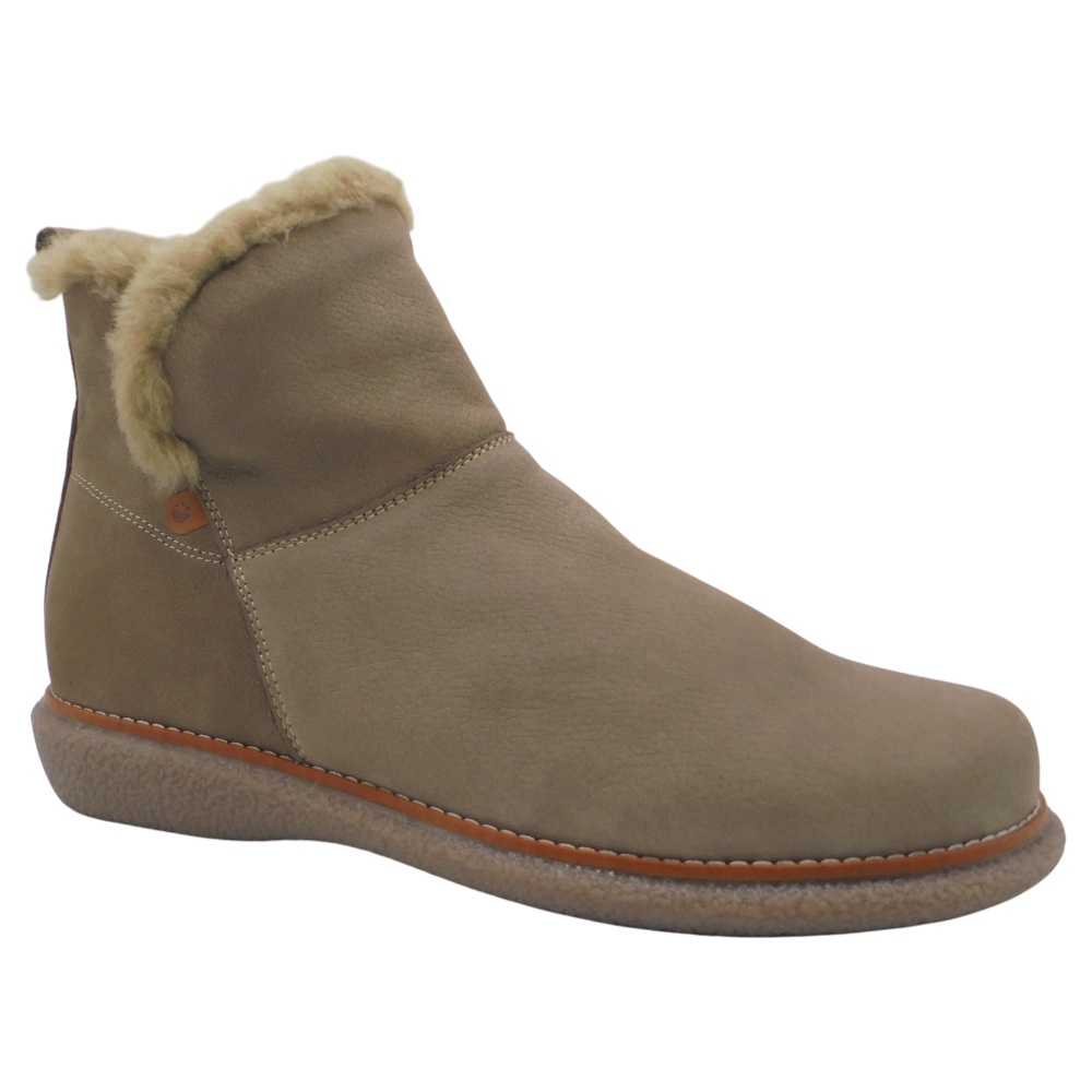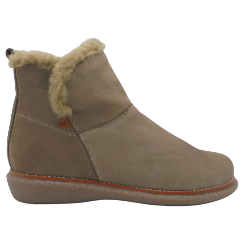 Su cuña de 2,5 cm aporta una ligera elevación y gran estabilidad, mientras que el piso de goma termoplástica antideslizante, cosido a la suela, garantiza una excelente resistencia y agarre. Como detalle distintivo, el adorno de pelo en la parte alta de la caña añade un toque cálido, invernal y elegante.