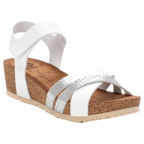 Elegancia y confort se unen en esta sandalia de la línea Xti Basic. Confeccionada en material que imita la piel, presenta un diseño de palas con tiras entrelazadas, destacando dos de ellas con acabado metalizado para un toque moderno y sofisticado. La pulsera al tobillo con cierre adhesivo asegura una sujeción óptima y práctica. Su cuña bio de 4,5 cm de altura ofrece la combinación ideal entre estilo y comodidad, mientras que la suela de goma antideslizante garantiza una pisada segura en cada paso. Perfectas para completar tus looks de verano con estilo y confort.