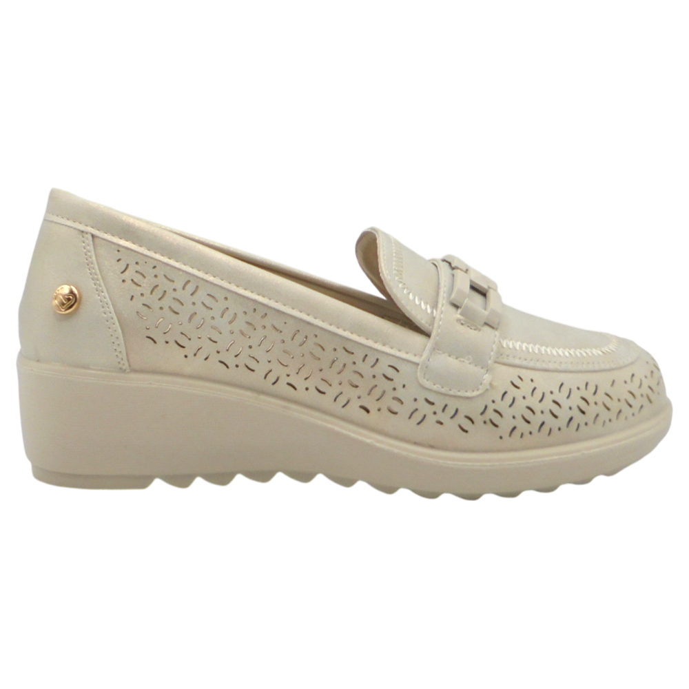 Diseñado para ofrecer el máximo confort, cuenta con plantilla extraíble de efecto memoria, que se adapta a la forma del pie y amortigua la pisada, proporcionando una sensación de comodidad durante todo el día. Su cuña de 4 cm aporta una ligera altura sin renunciar a la estabilidad.