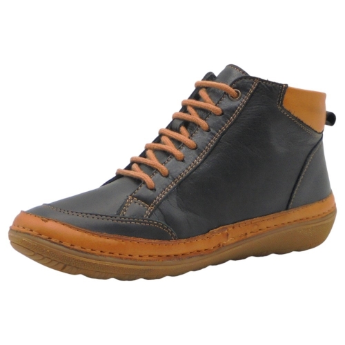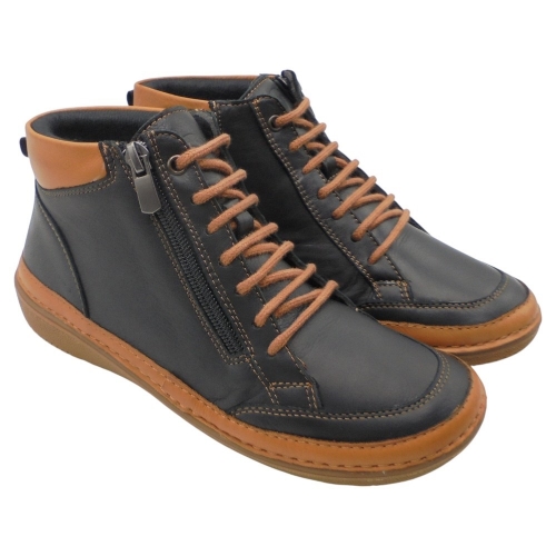 El equilibrio perfecto entre comodidad y estilo. Fabricado en piel natural de primera calidad, este botín presenta un diseño versátil con cierre combinado de cordones y cremallera que facilita el ajuste y la puesta. Su piso cosido con pespuntes decorativos y el contraste de piel en diferente tono aportan un toque único y moderno.