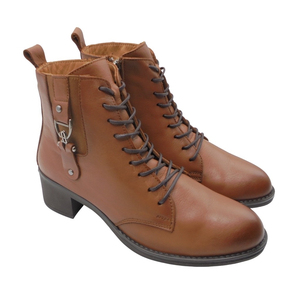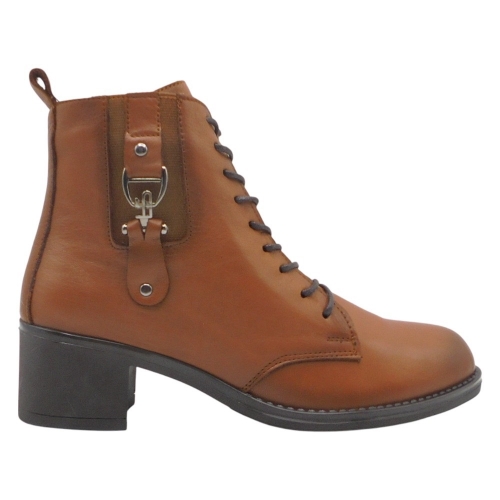 Un diseño elegante y versátil que se adapta a cualquier ocasión. Este botín está confeccionado en piel natural de alta calidad, con cierre de cremallera lateral que aporta comodidad al calzarlo y cordones decorativos adornados con una hebilla metalizada para un toque sofisticado y actual.