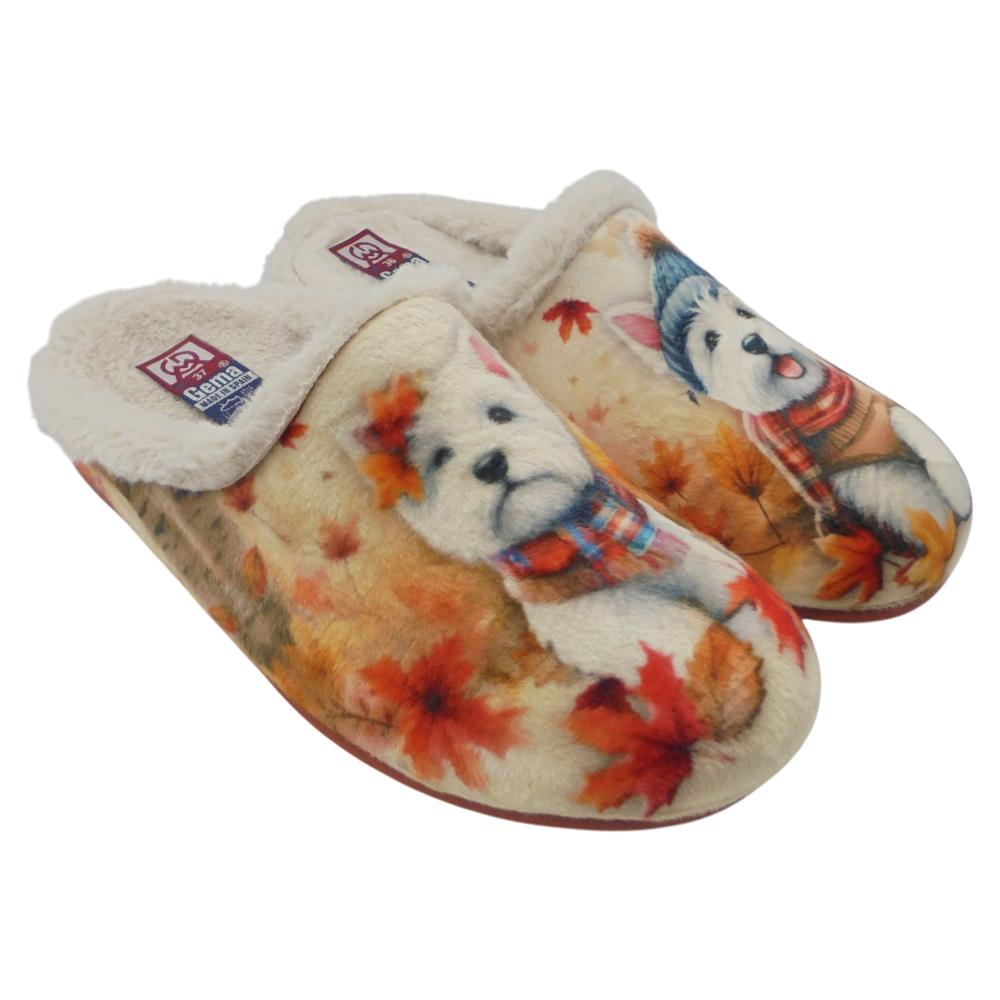GEMA GARCIA ZAPATILLAS DE CASA ESTAMPADO CAFE