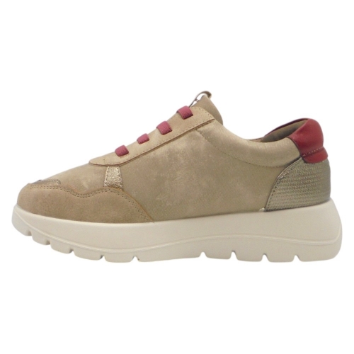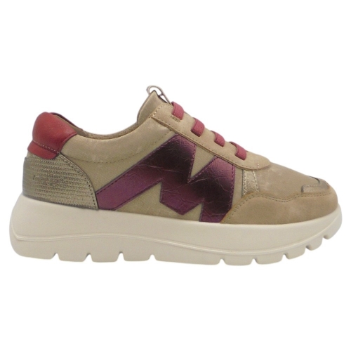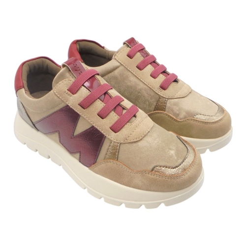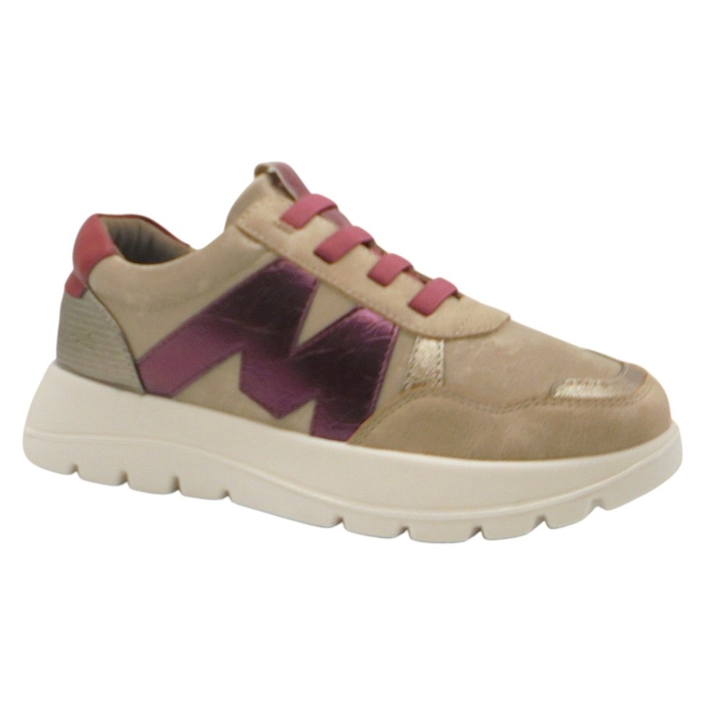 ¡Eleva tu estilo y confort al máximo con las zapatillas Mysoft 25M622 en taupe y detalles en burdeos!