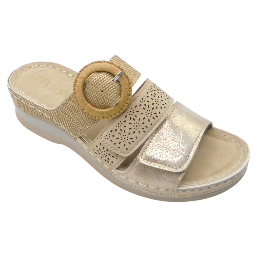 Descubre la sandalia destalonada tipo zueco del modelo 26M010 de la marca Mysoft, diseñada para ofrecer comodidad, estilo y funcionalidad en tu día a día. Este modelo destaca por su diseño con tres tiras en la pala, presentadas en diferentes tonos coordinados que aportan un toque moderno y versátil.