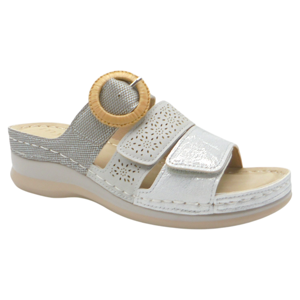 Descubre la sandalia destalonada tipo zueco del modelo 26M010 de la marca Mysoft, diseñada para ofrecer comodidad, estilo y funcionalidad en tu día a día. Este modelo destaca por su diseño con tres tiras en la pala, presentadas en diferentes tonos coordinados que aportan un toque moderno y versátil.