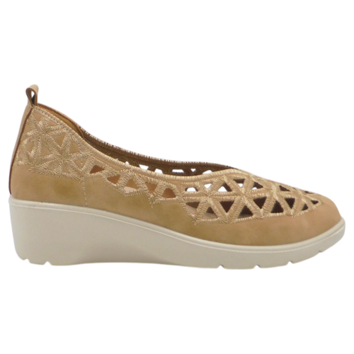 Estas manoletinas de cuña son la opción perfecta para mujeres que buscan un calzado cómodo, femenino y con un diseño especial que marque la diferencia. Su elegante pala calada y bordada aporta un toque delicado y sofisticado, ideal para complementar tanto looks casuales como más arreglados.