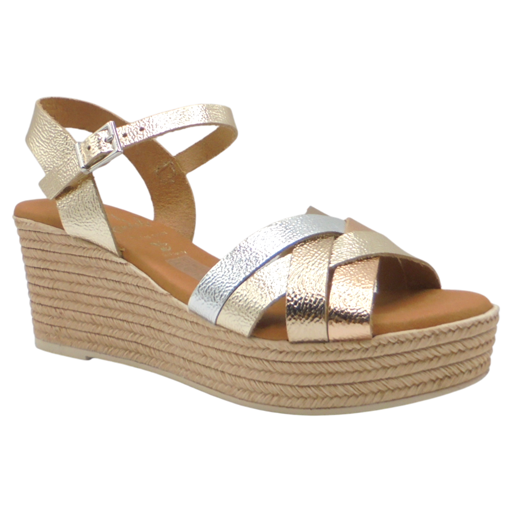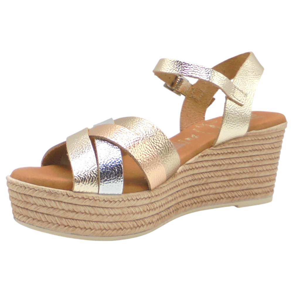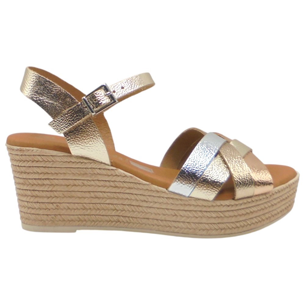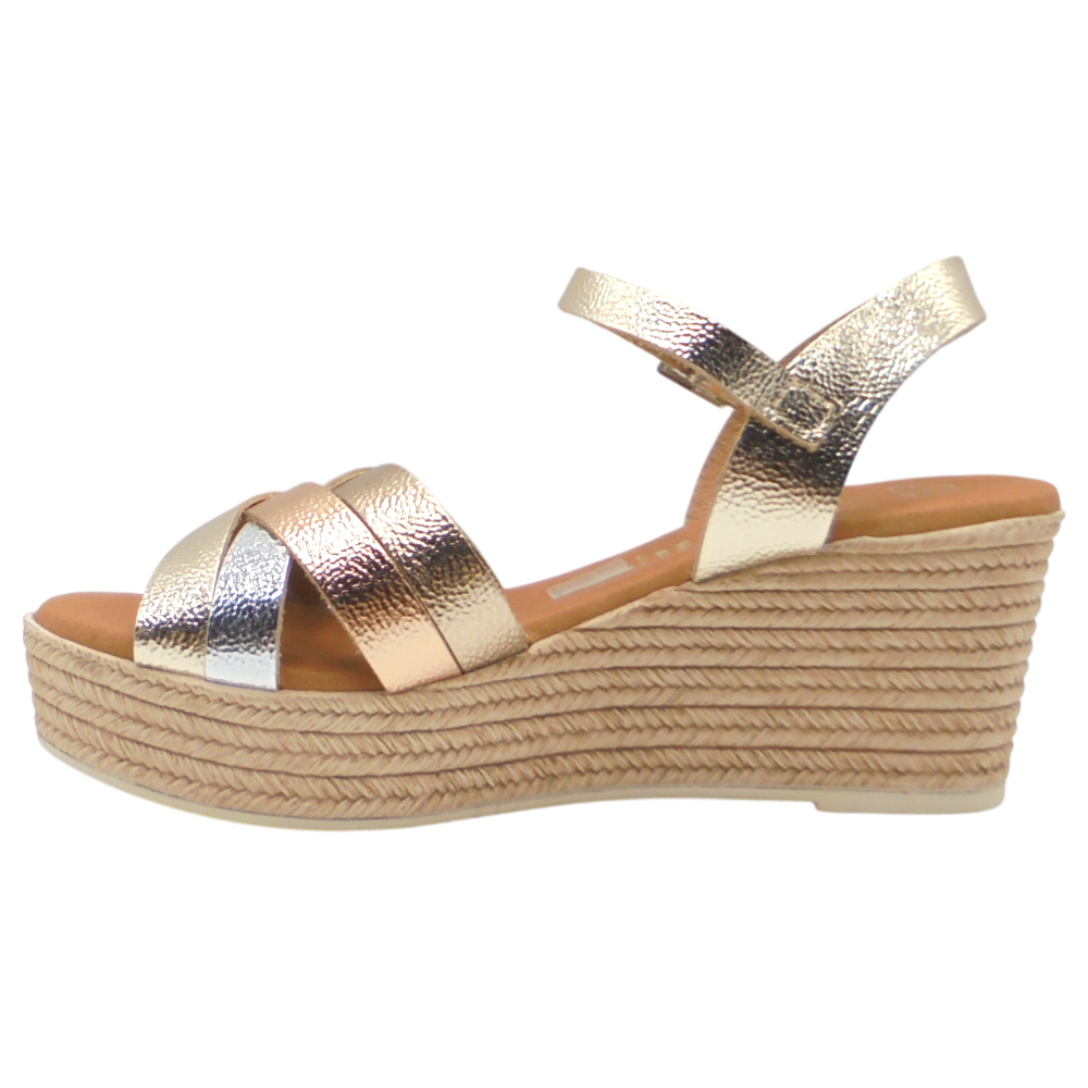 Cuenta con una cuña de 6,5 cm y una plataforma de 3 cm, ofreciendo la altura justa para estilizar sin perder comodidad. La plantilla de gel acolchada suaviza cada pisada, mientras que la suela de poliuretano con acabado imitación yute y patín de goma antideslizante proporciona estabilidad y seguridad al caminar.