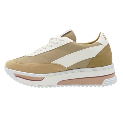 El modelo Popa Kongur Beige (DS43201 010) es una sneaker de estilo deportivo y casual que destaca por su combinación de materiales de alta calidad y su diseño versátil. Esta zapatilla en tono beige cuenta con detalles en blanco, lo cual le aporta un toque moderno y fácil de combinar. La suela alta y dentada no solo asegura una mayor tracción y estabilidad, sino que también añade estilo a cada paso, ideal para looks informales y deportivos chic. Además, el cierre con cordones permite un ajuste seguro y cómodo, y el acabado en nylon resistente y otros materiales de calidad garantizan durabilidad y confort para el uso diario