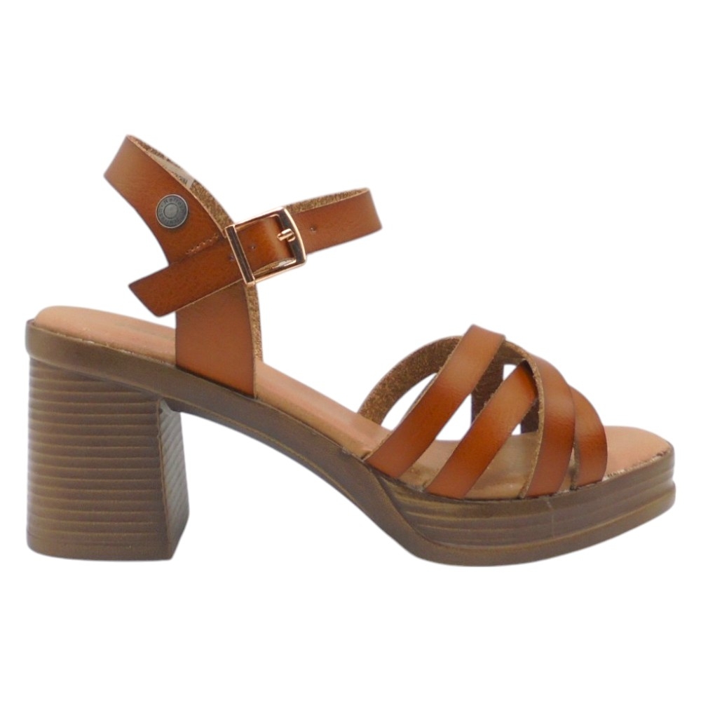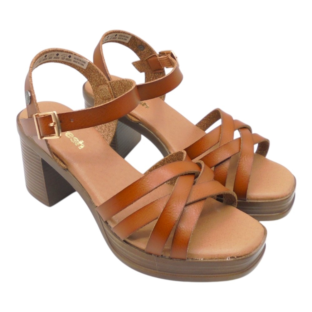 Dale un toque único a tu look con estas preciosas sandalias de Refresh. Están fabricadas en un material que imita la piel en un elegante color camel, con una pala de tiras cruzadas que se adapta perfectamente a tu pie. La pulsera con hebilla en el tobillo te da el ajuste perfecto para caminar con seguridad y confianza.