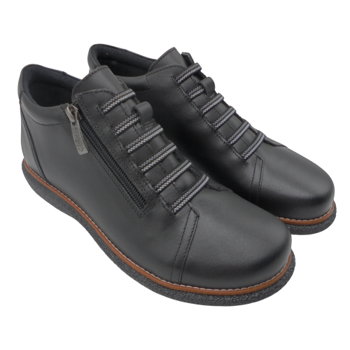 Su diseño incluye cordones elásticos ajustables junto a un cómodo cierre de cremallera lateral, facilitando un calce rápido y seguro. El interior está forrado con microfibra transpirable, mientras que la plantilla extraíble forrada en piel proporciona una sensación suave y adaptable a cada pisada.