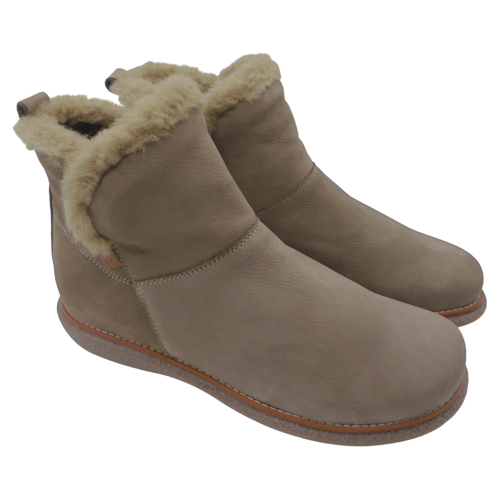 Su cuña de 2,5 cm aporta una ligera elevación y gran estabilidad, mientras que el piso de goma termoplástica antideslizante, cosido a la suela, garantiza una excelente resistencia y agarre. Como detalle distintivo, el adorno de pelo en la parte alta de la caña añade un toque cálido, invernal y elegante.