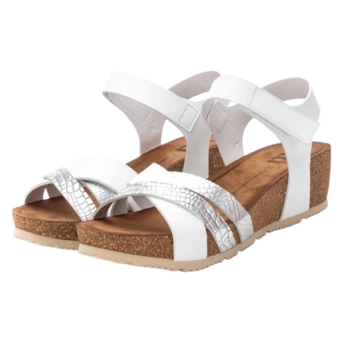 Elegancia y confort se unen en esta sandalia de la línea Xti Basic. Confeccionada en material que imita la piel, presenta un diseño de palas con tiras entrelazadas, destacando dos de ellas con acabado metalizado para un toque moderno y sofisticado. La pulsera al tobillo con cierre adhesivo asegura una sujeción óptima y práctica. Su cuña bio de 4,5 cm de altura ofrece la combinación ideal entre estilo y comodidad, mientras que la suela de goma antideslizante garantiza una pisada segura en cada paso. Perfectas para completar tus looks de verano con estilo y confort.