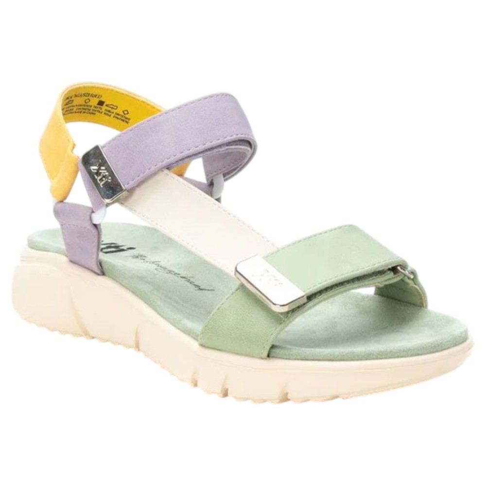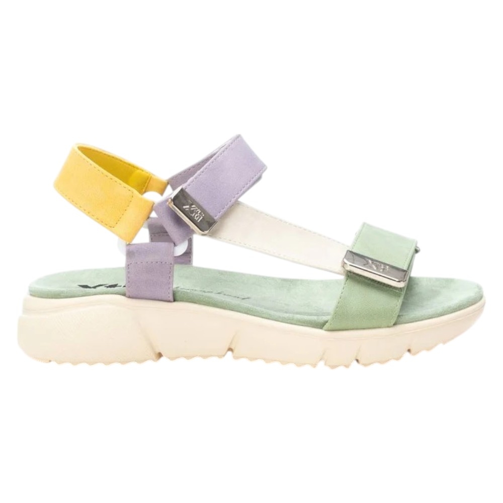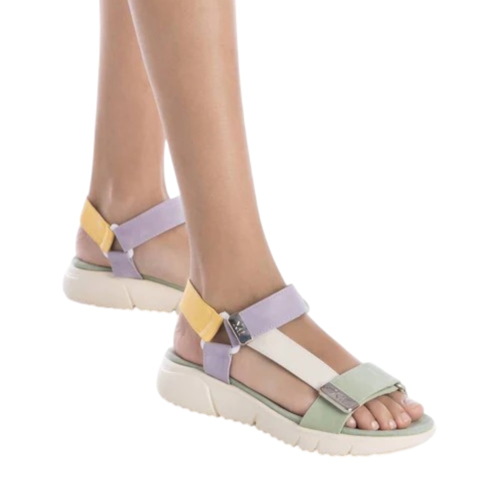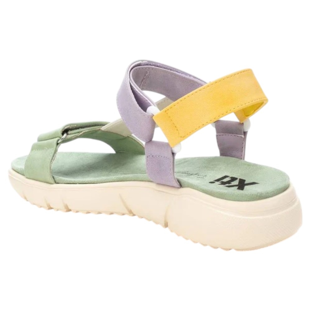 La sandalia negra de mujer Xti modelo 144112 destaca por su diseño moderno y funcional. Fabricada en material que imita la piel, es una opción perfecta para quienes buscan comodidad y estilo. Su modelo de tiras se adorna con un detalle metálico que le da un toque sofisticado y atractivo. El cierre es mediante cierre adhesivo, lo que facilita su ajuste y uso diario. La suela deportiva ofrece una amortiguación excelente, mientras que su característica antideslizante proporciona seguridad al caminar. Ideal para complementar un look casual pero elegante, esta sandalia asegura confort y estabilidad en todo momento