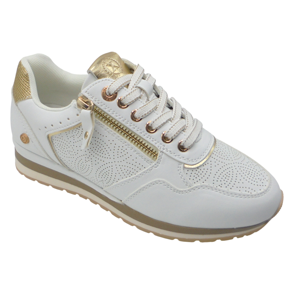 Disfruta de estilo y comodidad en tu día a día con la zapatilla deportiva casual de mujer XTI 145163 de la marca XTI. Fabricada en material que imita la piel, presenta un diseño moderno que combina cordones y cremallera lateral, facilitando el calce y aportando un toque actual y funcional. Destaca por su troquelado decorativo lateral, que añade un acabado elegante y distintivo. Su suela cómoda y sofisticada garantiza una pisada estable y agradable, convirtiéndola en la opción ideal para el uso diario con estilo urbano.